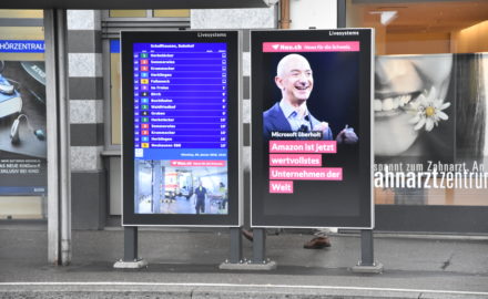 Livesystems dooh AG setzt bereits auf unsere Outdoor Lösung, welche sie in diversen Städten wie z.B. Schaffhausen an der Bushaltestelle (siehe Beitragsbild) installiert hat.