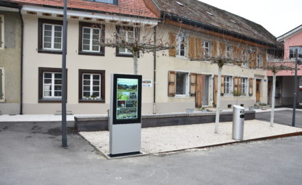 Über dies hinaus kann man den Tourismus herzlichst und auf moderner Weise Willkommen heissen und zur Region gezielt informieren. Mit der Touchfunktion können Nutzer Informationen zu z.B. Sehenswürdigkeiten, Gewerbe, Events oder Routenplanung interaktiv abrufen. Somit unterstützt die Gemeinde das lokale Gewerbe und pflegt eine engere Zusammenarbeit.