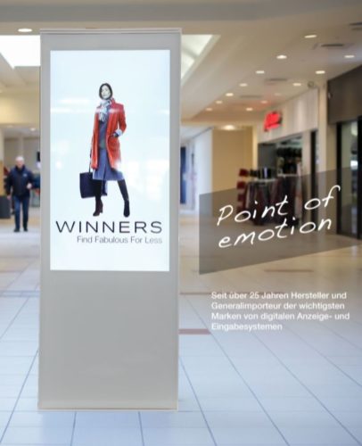 Es ist entscheidend, dass der Kunde das Produkt live erlebt und gleichzeitig alle relevanten Produktinformationen dazu digital präsentiert bekommt. Und zwar genau in dem Moment, wenn er danach sucht, an dem Standort, wo er sich gerade befindet. Zugleich werden die Online- und die Offline-Welt miteinander verknüpft. Der digitale Wandel erfordert also Veränderungen. Die Inputech AG bietet als Marktführerin die Geräte-Linie DOMIS Digital Signage, die spezifisch für die Indoor-Nutzung bzw. die verkaufsunterstützenden Geräte am Point of Information ausgelegt ist. Ob standard oder kundenspezifisch – die DOMIS-Digital-Signage-Geräte eignen sich aufgrund ihres eleganten Designs und ihrer innovativen Technologie für die Platzierung in Empfangsbereichen, Eingangshallen, Einkaufzentren, Eishallen, Fussballstadien, Haltestellen, Post, Bank etc.