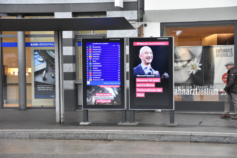 Nutzen Sie unsere einzigartige und zuverlässige Lösung zur emotionalen Kommunikation mit Kunden und Passanten. Egal ob im Parkhaus, am Bahnhof oder Skigebiet – auffällig, flexibel und zuverlässig: Der 75“ FORIS Outdoor Kiosk vermittelt die digitale Willkommens- oder Marketingbotschaft auf moderne Weise und informiert die Kunden gezielt, damit die Besucher endlich ein effizientes und modernes Wegleitsystem haben, keine Zeit mehr verlieren und sich abgeholt fühlen. Die Kioske können freistehend in der Fussgängerzone aufgestellt oder an eine Wand oder Decke montiert werden.