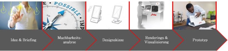 Um solch ein hervorragendes Endresultat zu erlangen, steckt viel Zeit und Arbeit dahinter. Zu Beginn setzen wir uns mit unserem Vertriebspartner zusammen, um die Wünsche und Bedürfnisse seines Kunden zu verstehen und zu erfassen. Anschliessend erstellen wir eine Machbarkeitsanalyse. So garantieren wir, dass die fertige Stele ihren Zweck erfüllen wird. Daraufhin wird von unserer Konstruktionsabteilung eine Designskizze zu Papier gebracht. Diese wird unserem Vertriebspartner und seinem Kunden präsentiert – eventuell werden Korrekturen angemerkt. Nachfolgend kreieren wir ein Rendering und eine Visualisierung. Dies wird erneut von unserem Vertriebspartner beziehungsweise seinem Kunden abgesegnet. Nach Begutachtung und Bejahung der Visualisierung erfolgt die Produktion der kundenspezifischen Lösung. Je nach Komplexität und Grösse des Projektes wird ein Prototyp hergestellt.